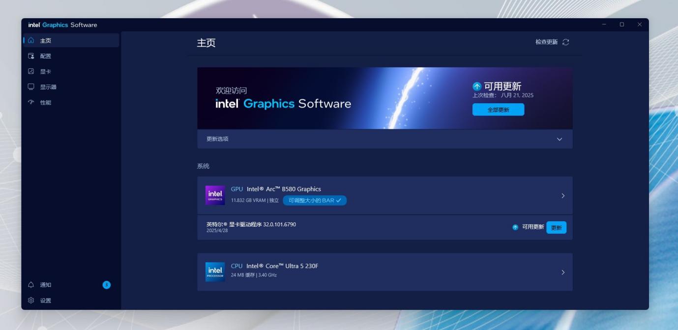 使用英特尔的软件,可以轻松配置,包括升级驱动等等。