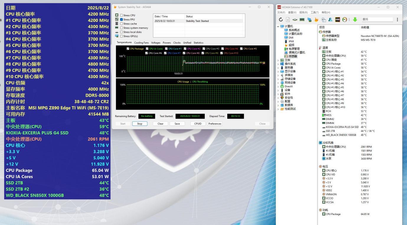 AIDA64 FPU测试,功耗仅65W,从而让温度控制非常轻松,小机箱散热也是毫无压力。