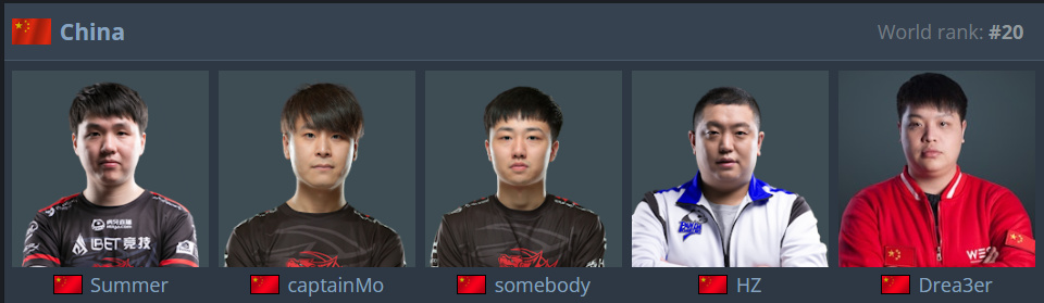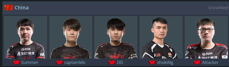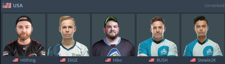 美國隊:n0thing、EliGE、Hiko、RUSH、Stewie2K