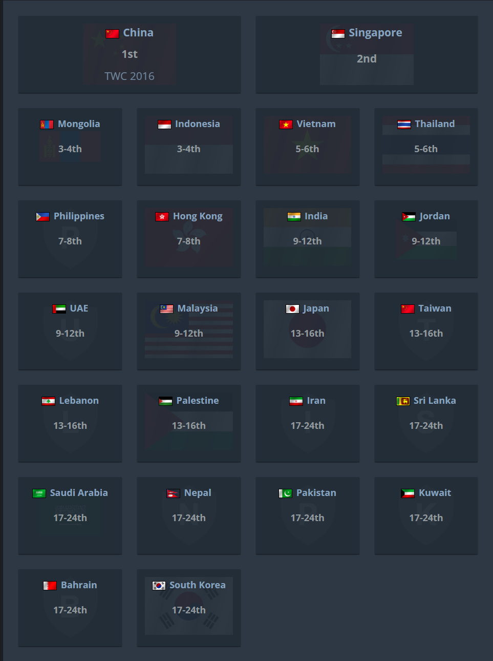 2016世界盃亞洲預選賽參賽國家(中國臺灣旗幟已和諧)