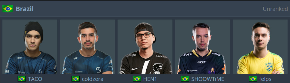 巴西隊:HEN1、coldzera、TACO、felps、SHOOWTiME