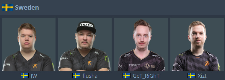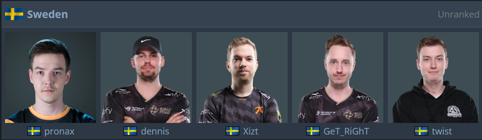 瑞典:twist、GeT_RiGhT、JW、flusha、Xizt、dennis、pronax