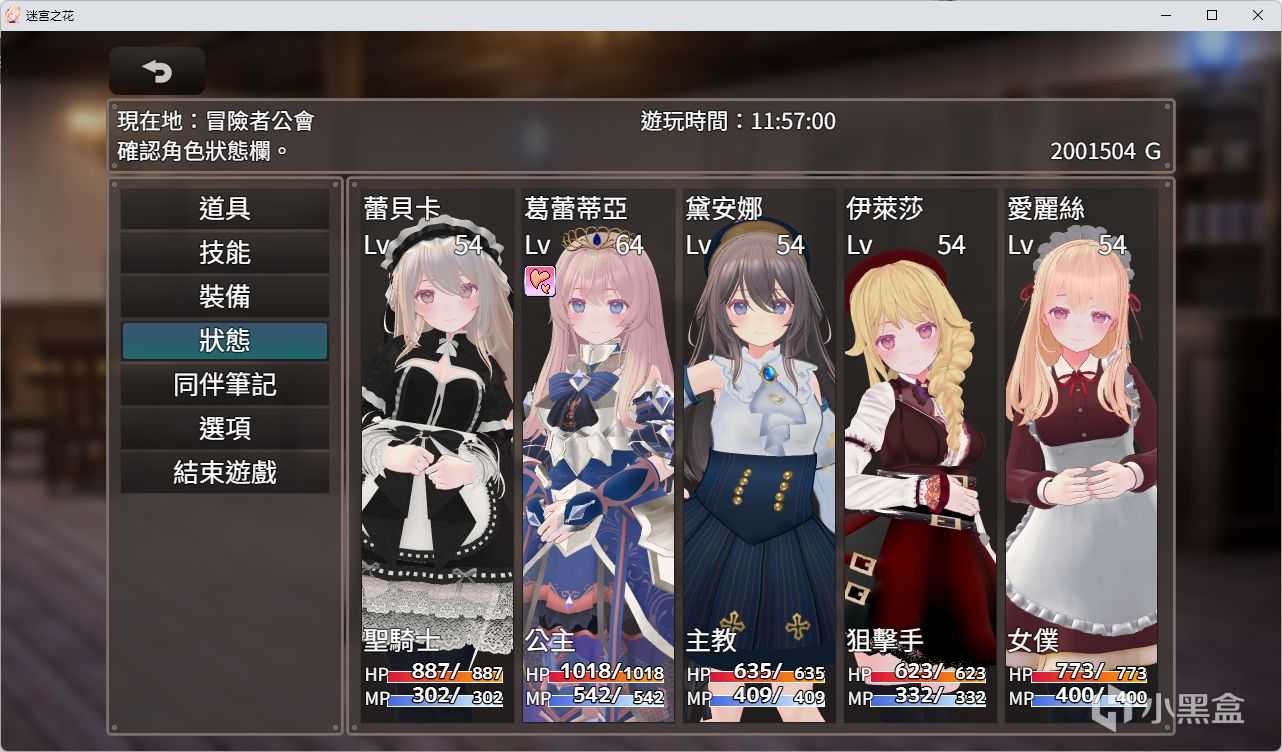 風格各不相同,好感度基本上靠戰鬥獲得,當然有錢任性(迷宮20層可以購買好感度道具和畢業道具),肝帝也可以通過後期的魔王雕像刷掉落的經驗道具升級角色。 個人推薦的隊伍配置,選擇聖騎士,主教,狙擊手,後期可以加入公主和女僕