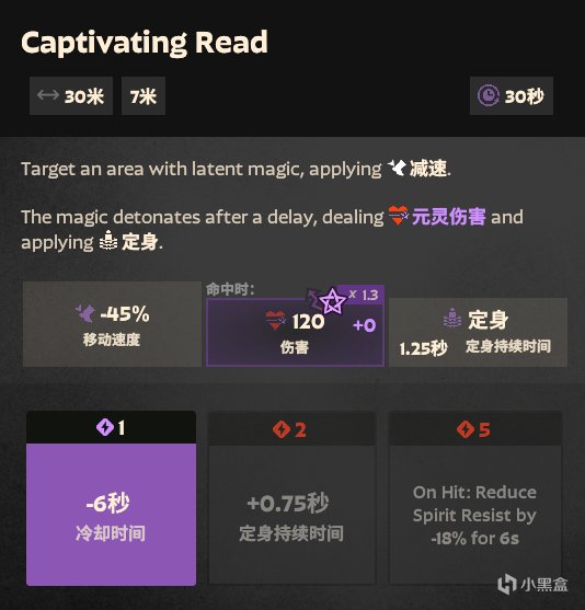 升級效果:-6s CD / +0.75s定身時間 /命中敵人時,減少目標18%元靈抗性,持續6s