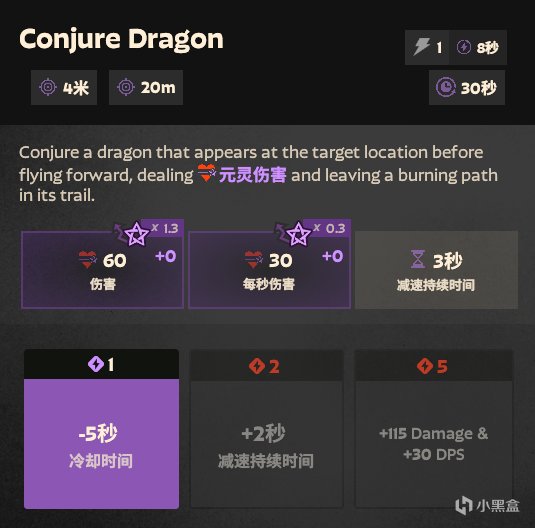 升級效果:-5s CD/+2s 減速持續時間/+115傷害且每秒額外造成30點傷害