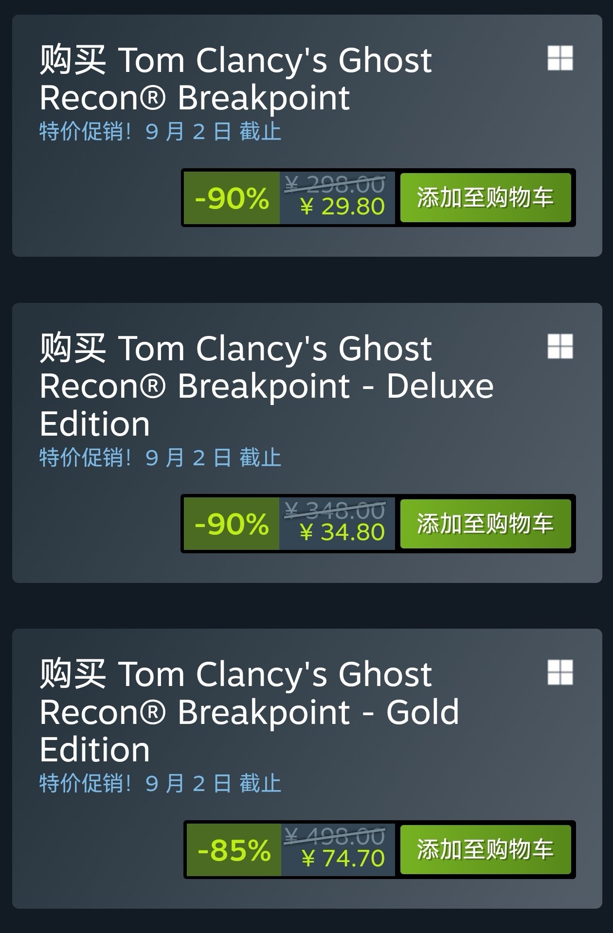 游戏价格一览: