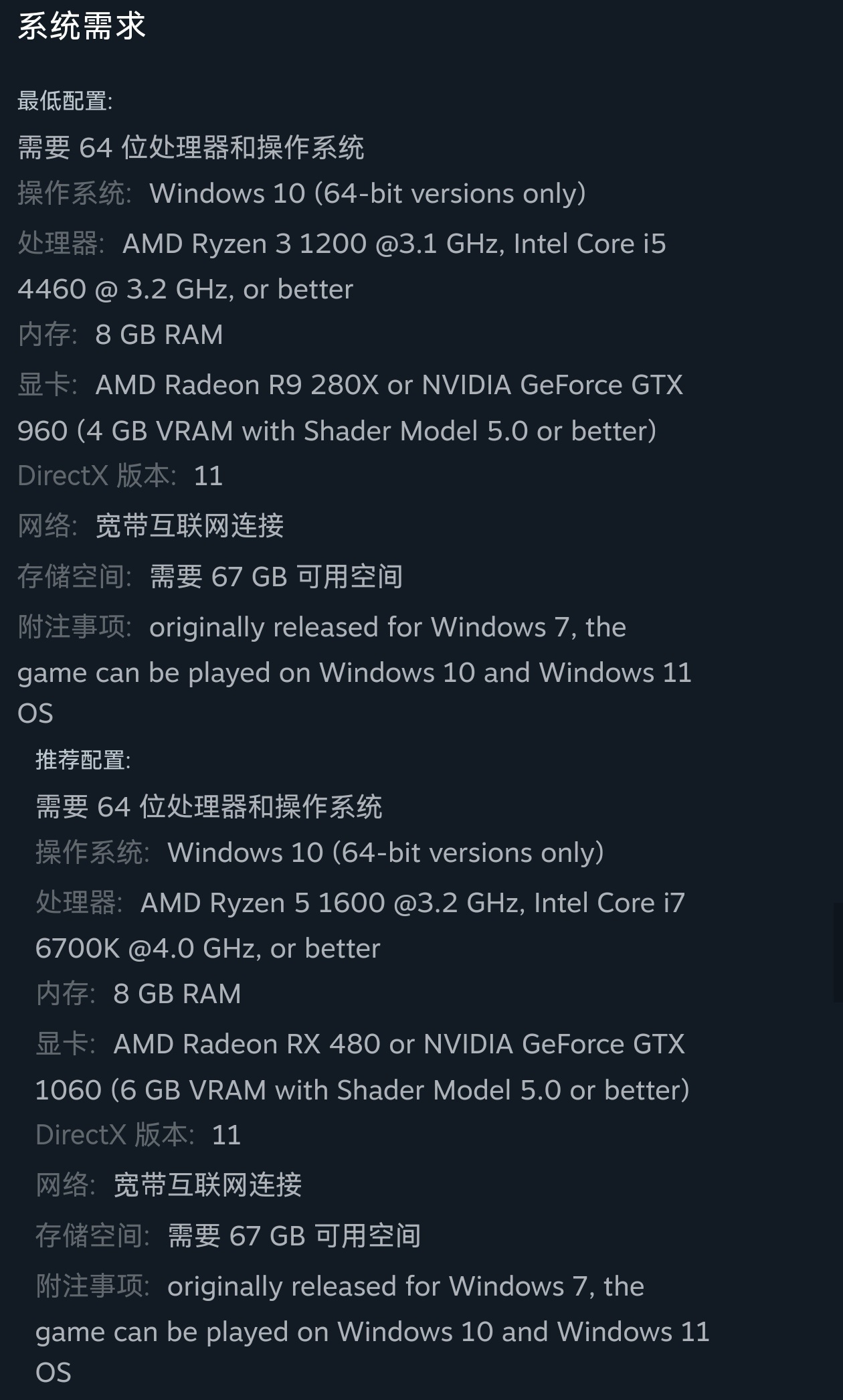游戏配置要求: