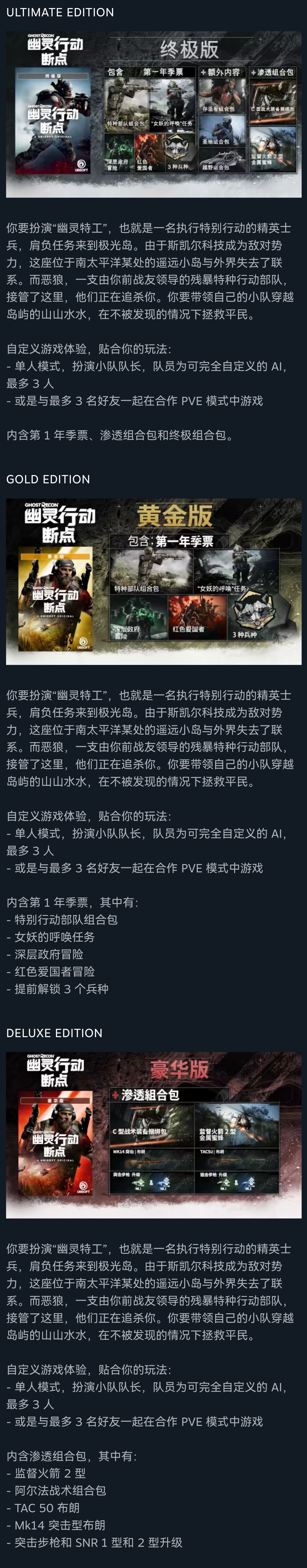 游戏各个版本内容