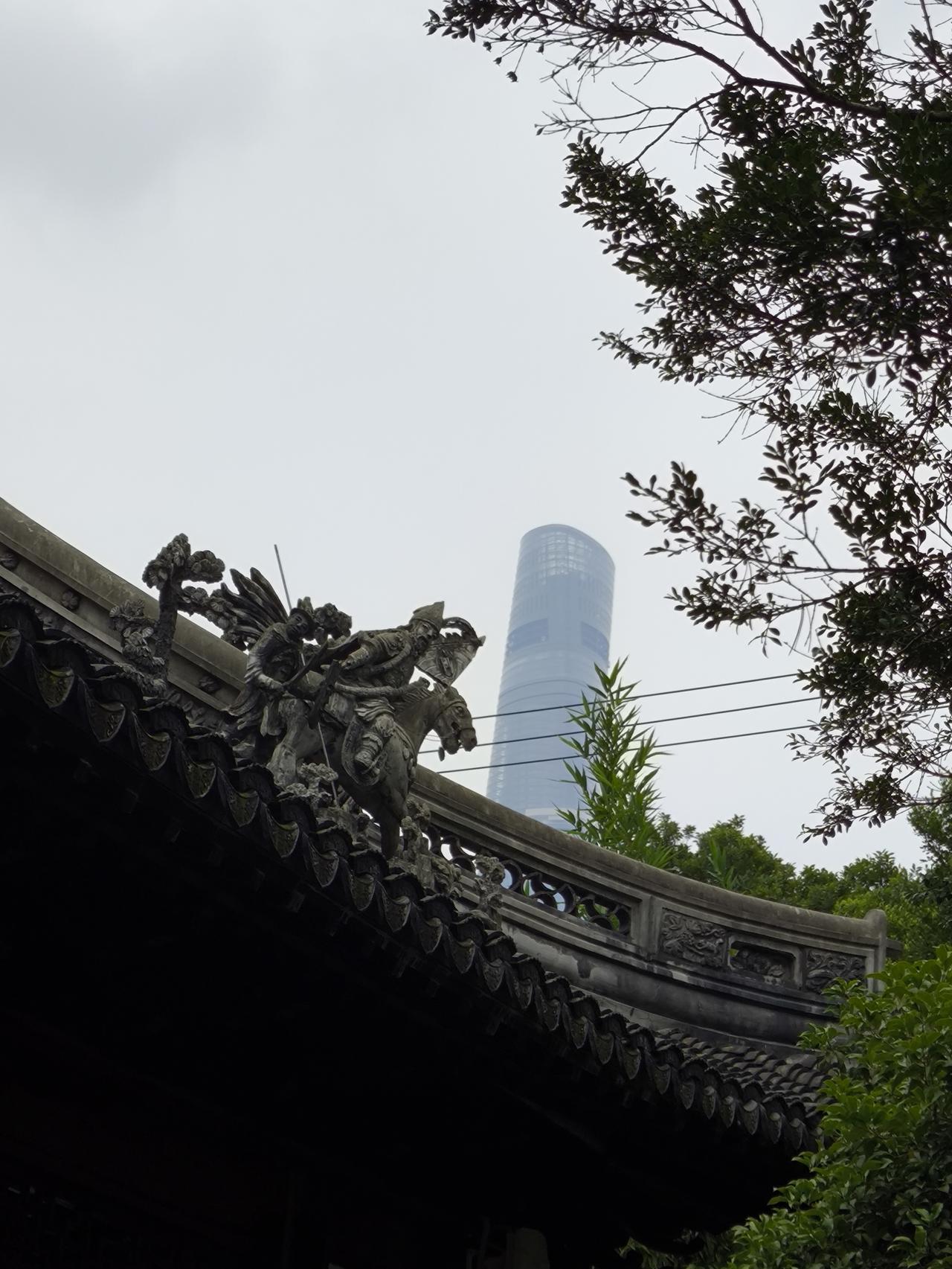 一个是现代大楼,一个是古典园林,这种结合很奇妙呢!