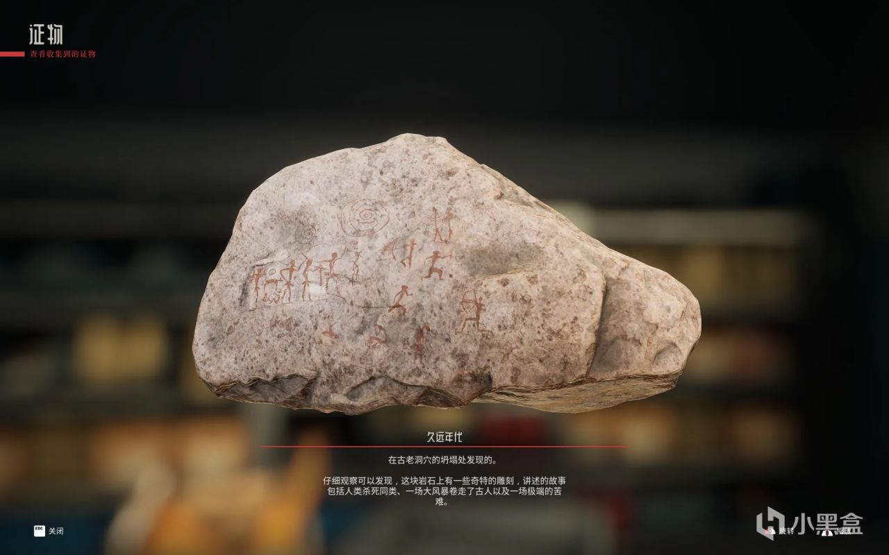 在古老洞穴的坍塌处发现的。 仔细观察可以发现,这块岩石上有一些奇特的雕刻,讲述的故事包括人类杀死同类、一场大风暴卷走了古人以及一场极端的苦难。
