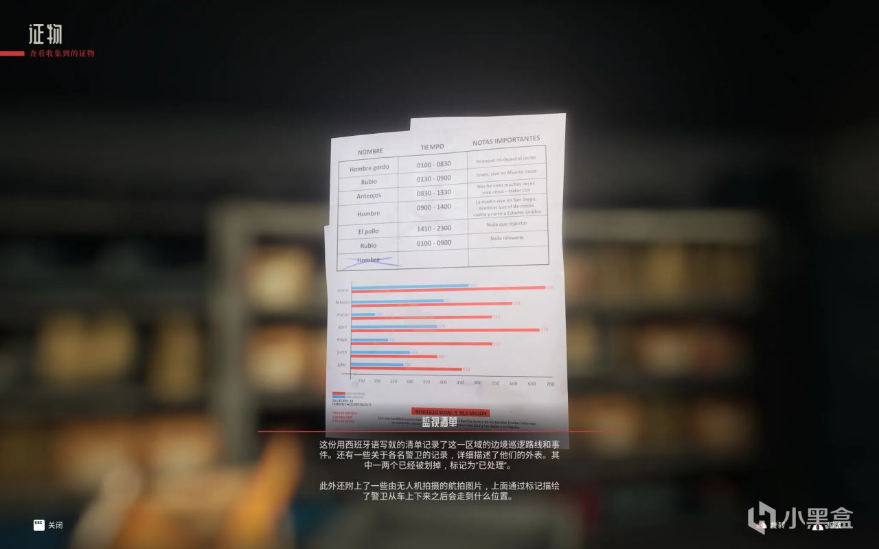 这份用西班牙语写就的清单记录了这一区域的边境巡逻路线和事件。还有一些关于各名警卫的记录,详细描述了他们的外表。其中一两个已经被划掉,标记为“已处理”。 此外还附上了一些由无人机拍摄的航拍图片,上面通过标记描绘了警卫从车上下来之后会走到什么位置。