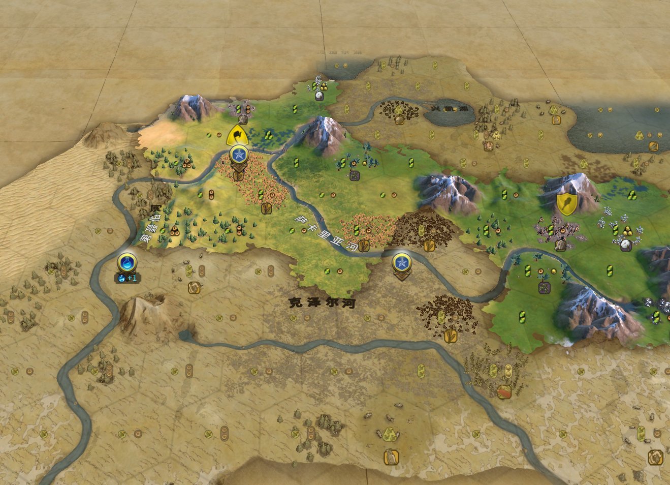 上图中,该城市拥有大片的『平丘』高锤地块,但是没有高粮甚至连2粮都保证不了(羊请忽略)。如此,人口升+2后立马又要掉人口,人口不上去,大量高锤地块上缺乏劳动力,那么地块产出就没有任何价值。