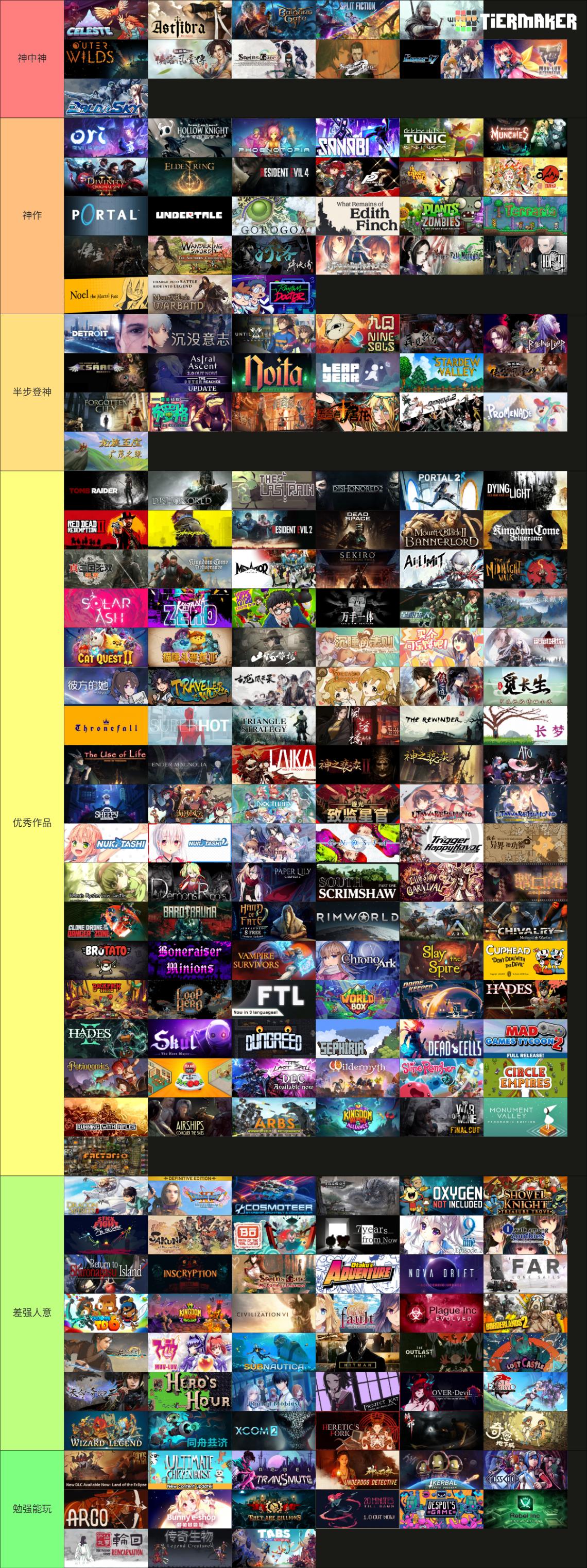 其實一開始我是不太想做這張彙總圖的(因爲懶),想着以前的遊戲就放那吧。結果越往後越覺得,確實需要這麼一張可以直觀體現我真正感受的圖表。