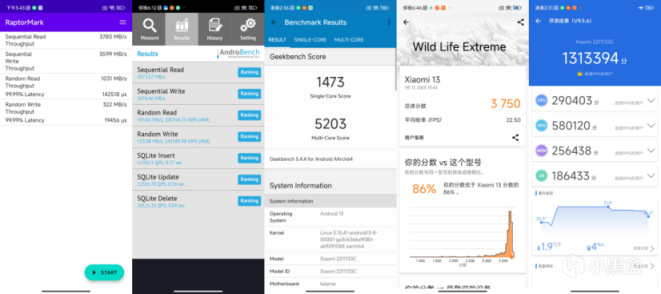 实测UFS 4.0闪存的速度,RaptorMark顺序读取3780 MB/s,顺序写入3599 MB/s,随机读取1031 MB/s,随机写入322 MB/s;AndroBench顺序读取3573.57 MB/s,顺序写入2676.46 MB/s,随机读取393.61 MB/s, 随机写入553.08 MB/s,提升幅度不小。