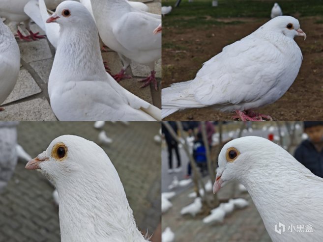 来看下主摄和长焦的微距表现,拍拍鸽子,看一下羽毛细节,下午天气不好,这个表现已经超出我预期了。