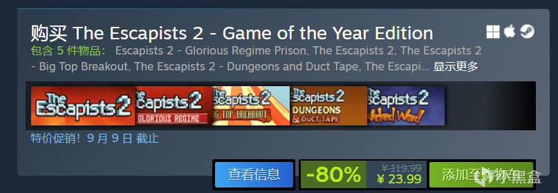 《逃脫者2》原價120,史低19,現價24(剩13天)steam上打折