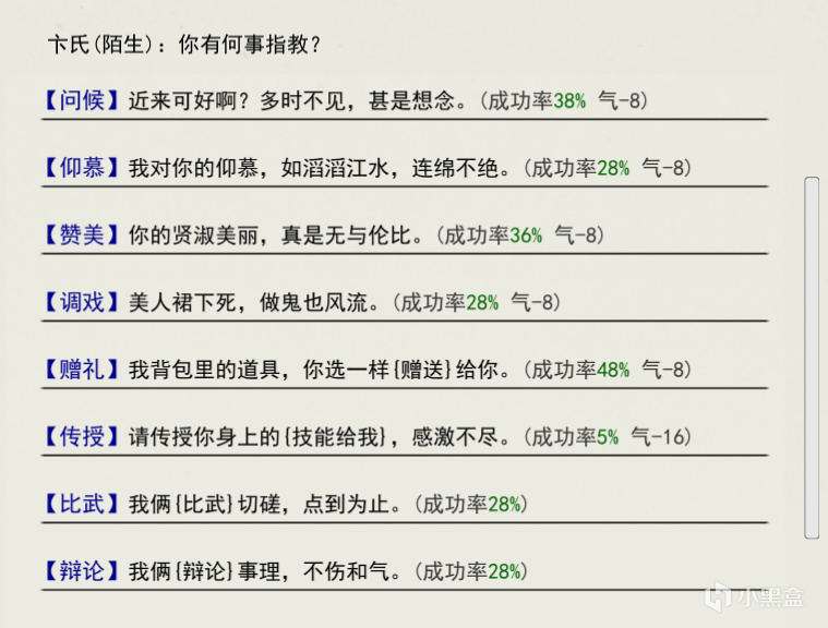 有多种选项可选择来增加好感,其中赠礼是最快的,但要看你赠的物品品质,你还可以去酒馆请喝酒也能增加好感,而且会发生意想不到的事情,例如