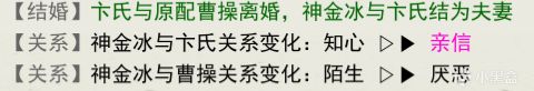 曹贼方面,如果你与有配偶的女或男性武将达到知心好感,便可触发事件“舍弃旧爱”