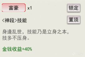 这个技能我感觉是开局必备技能,金钱收益的范围非常大,不止会作用于在市场中的低买高卖,其会作用于你所有收到的金钱,包括但不限于赌场,卖消耗品等,非常强力