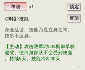 单骑这个技能我认为是必带的,武力值够高的话,能对敌方造成很大伤害
