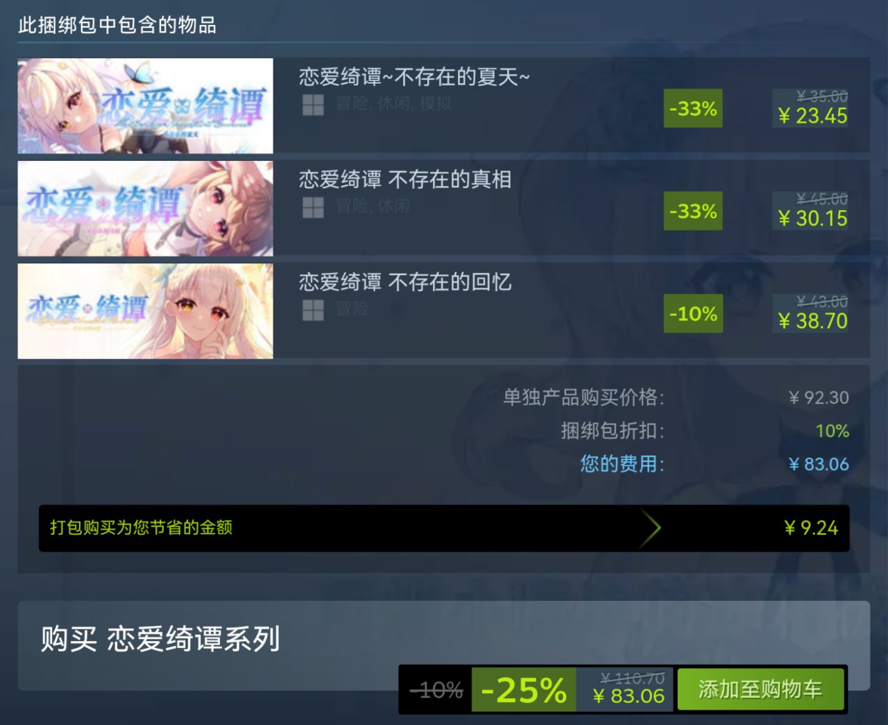 戀愛綺譚系列第三作《不存在的回憶》已在steam推出了,首發38.7元