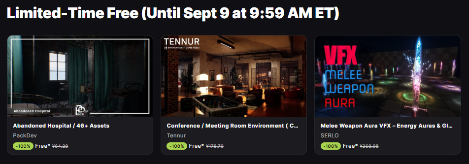 限时免费白嫖EPIC 三款价值不菲的【游戏开发】资源,将于北京时间9.09,21:59(美东时间9.09,9:59)到期!