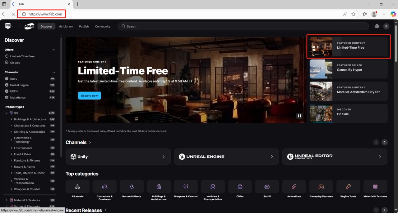 EPIC商城 > Unreal Engine(虚幻引擎)> Fab >Start exploring > Fab官网