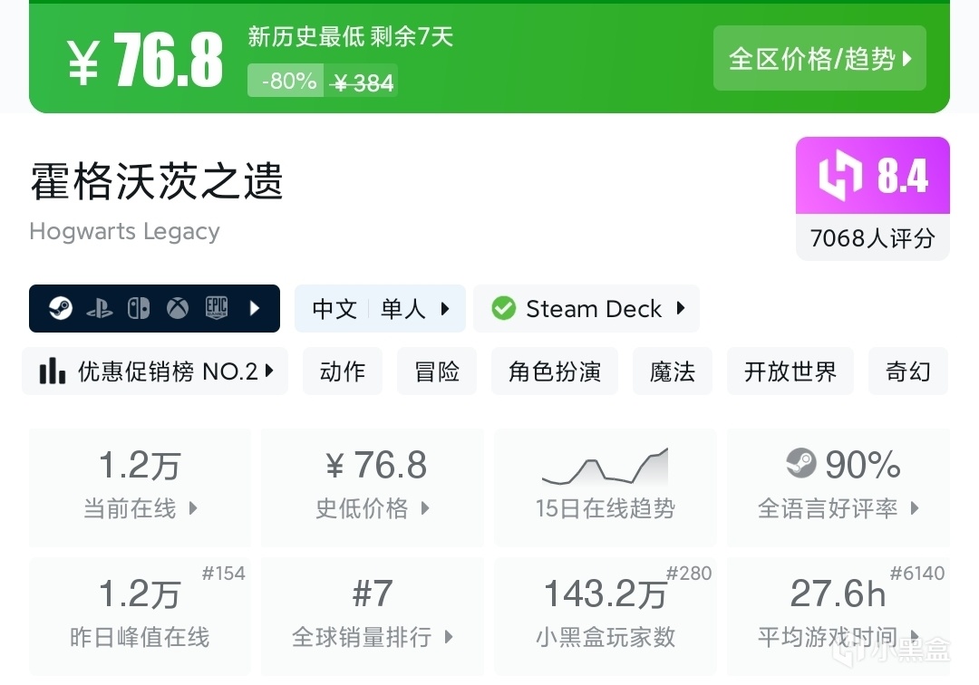 昨天小黑盒超史低沒搶到的沒關係,今天直接新史低。券後73