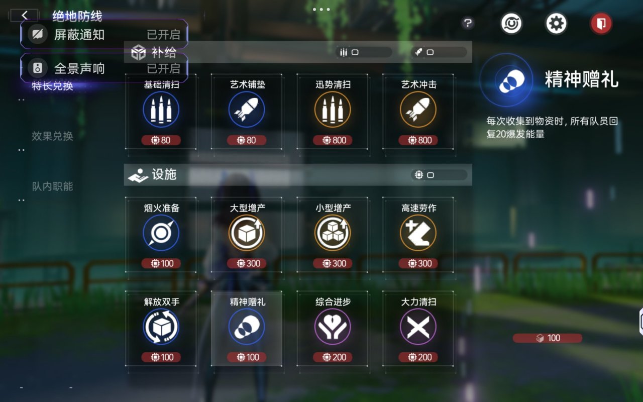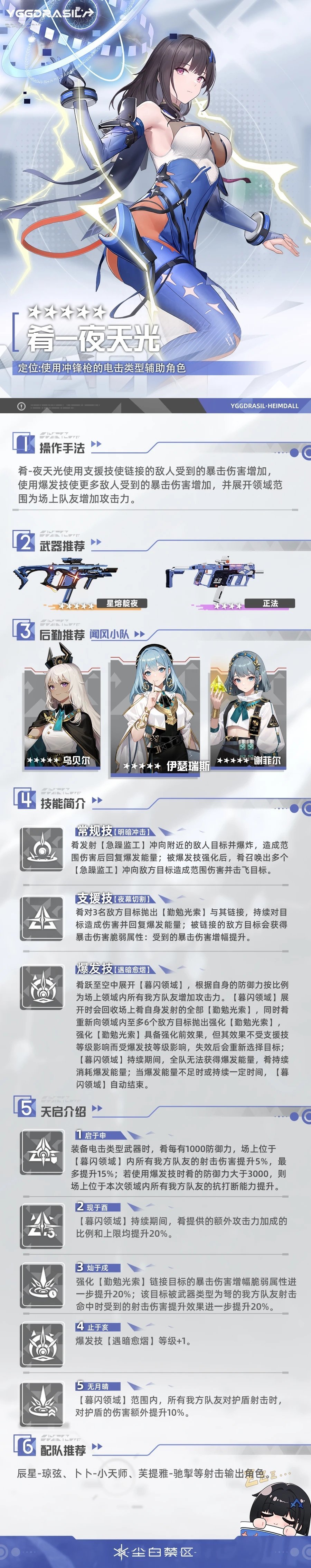 採集者(雙槍)無限之視,會玩的,後勤三滿極速,開局肯定特長選精神贈禮,收集到物資,所有隊友回覆20爆發能量,方便自己開大清物資,這讓餚-夜天光(爆發技CD5秒)能無限續大。