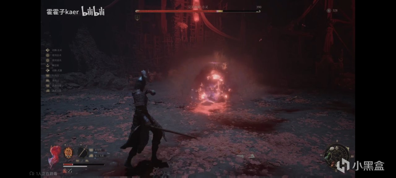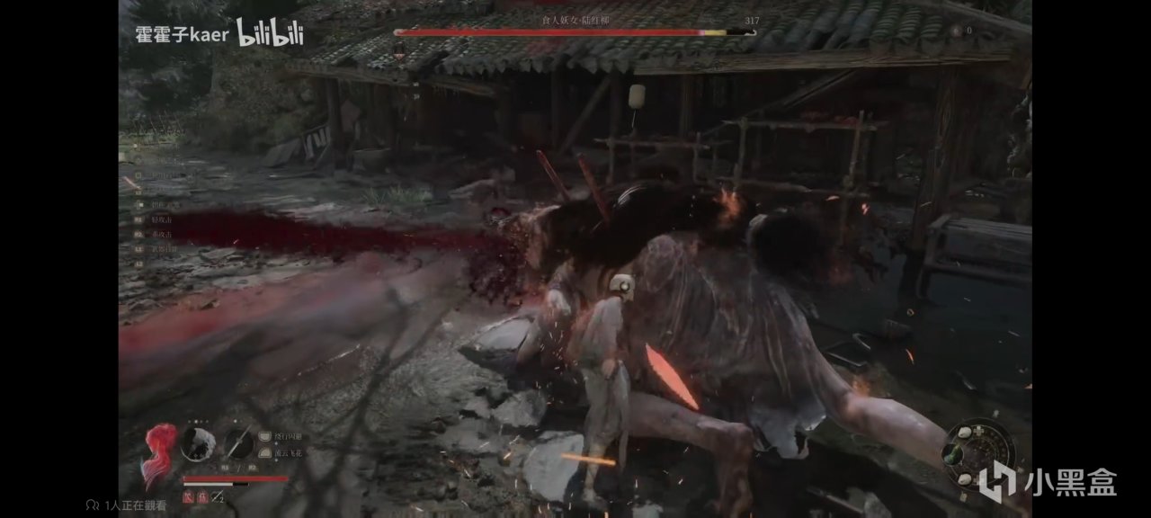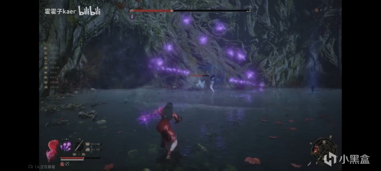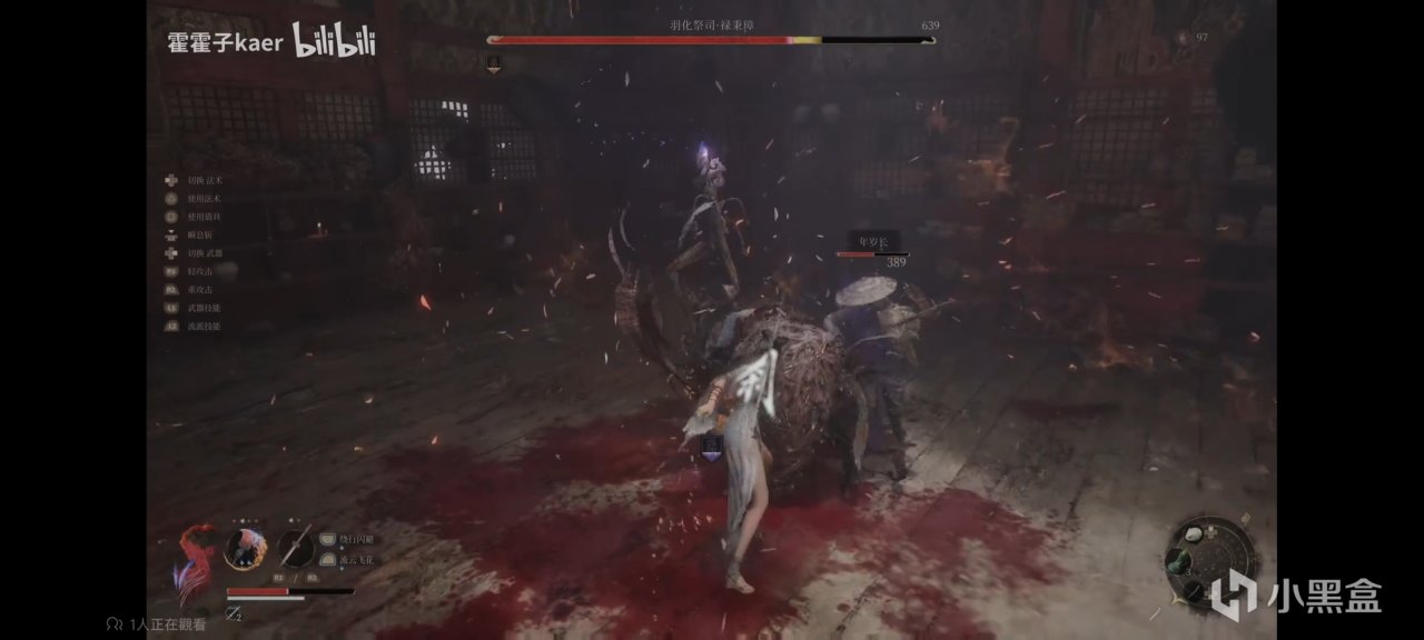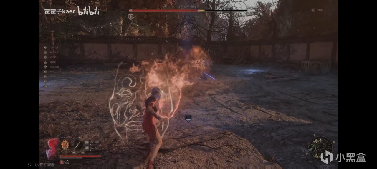 这里不推荐用连珠火,场地太开阔加上多动怪,没有追踪功能的法术基本很容易被躲开,同样的思路攒好羽毛就放鬼面拉扯到对面没血,红岚比起后面的boss出招没有那么多特效还是挺好躲得,我是初见杀过的,只可惜上来连珠火被躲了发现不对路就换技能了。