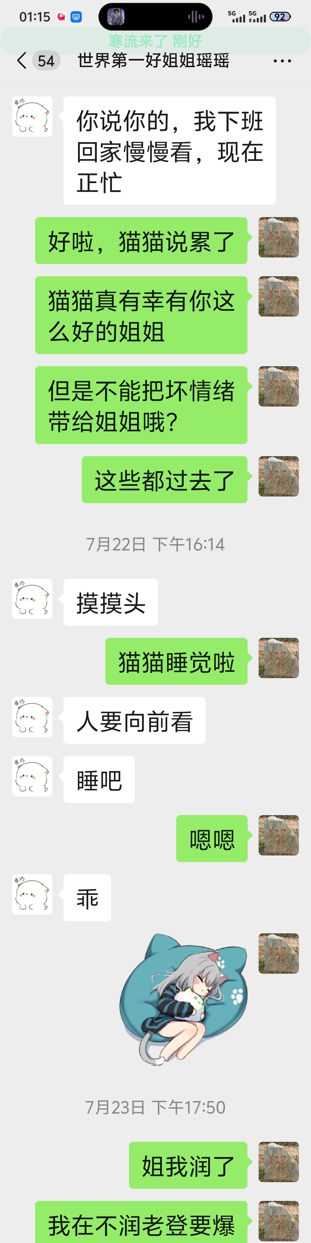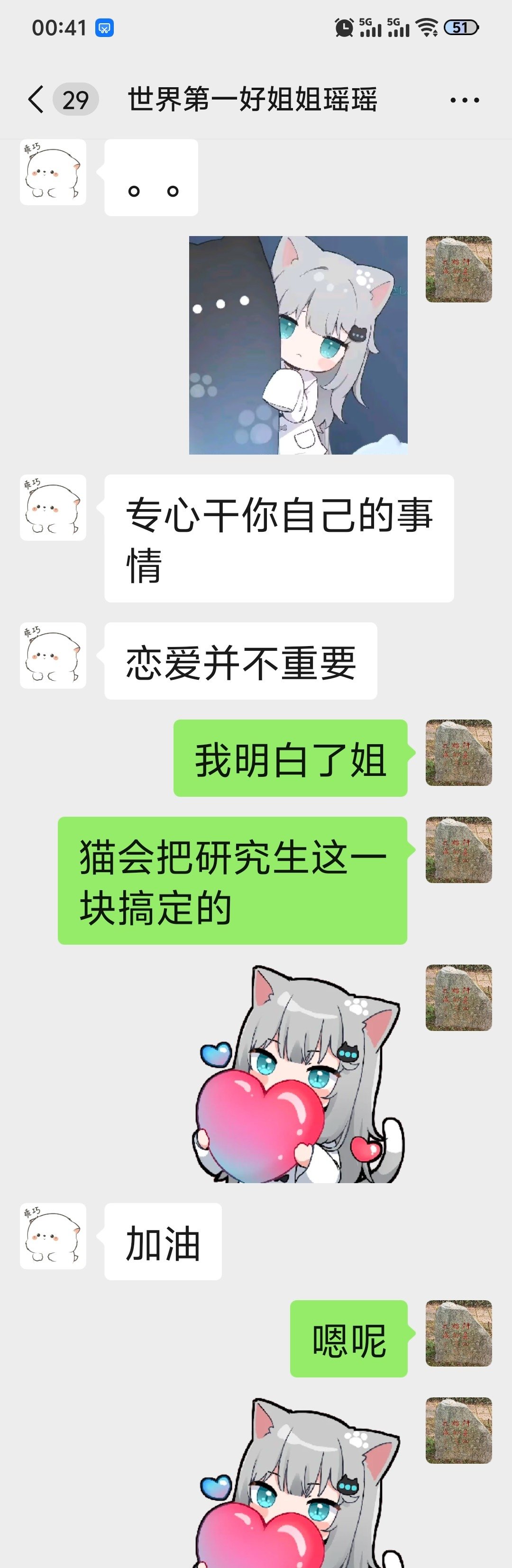 瑤瑤比我親姐姐還親,我的情感問題,學習方向問題,就是她幫我解決的,小貓被欺負了老是會哭唧唧找姐姐訴苦,姐姐費好大勁才哄好,真是麻煩姐姐了。