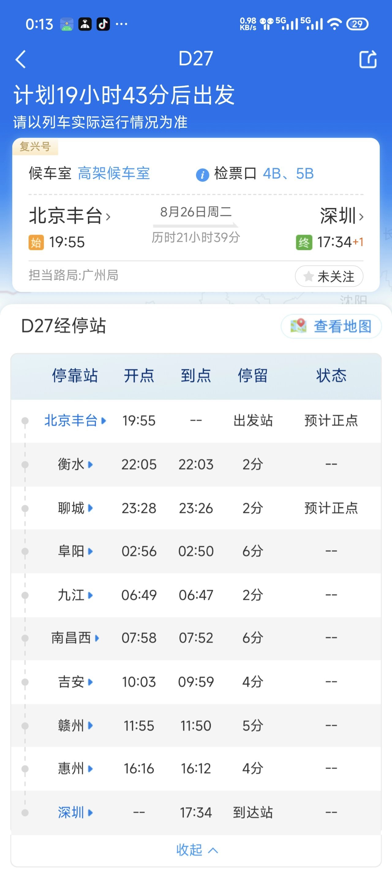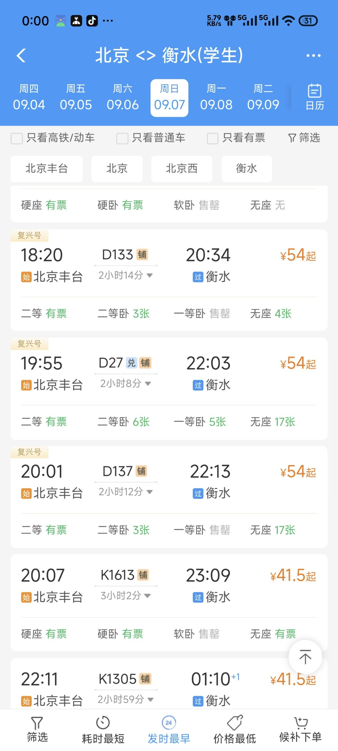 如果你的行程的始發站售票時間比較晚,有可能票會被行程始發站售票時間比你早的乘客買光,這樣你就買不到票了,如果這種情況的話如果出行很重要可以考慮一下買長乘短(買長乘短中途上車和提前下車都是不影響的,比如我購買了D27次列車的北京豐臺到深圳的票,我從衡水站上車,南昌西站下車,都是可以正常進出站的,沒有任何影響)購買你所需要乘坐的在你上車站之前的經停站的票來乘車(千萬不要買短乘長哦)