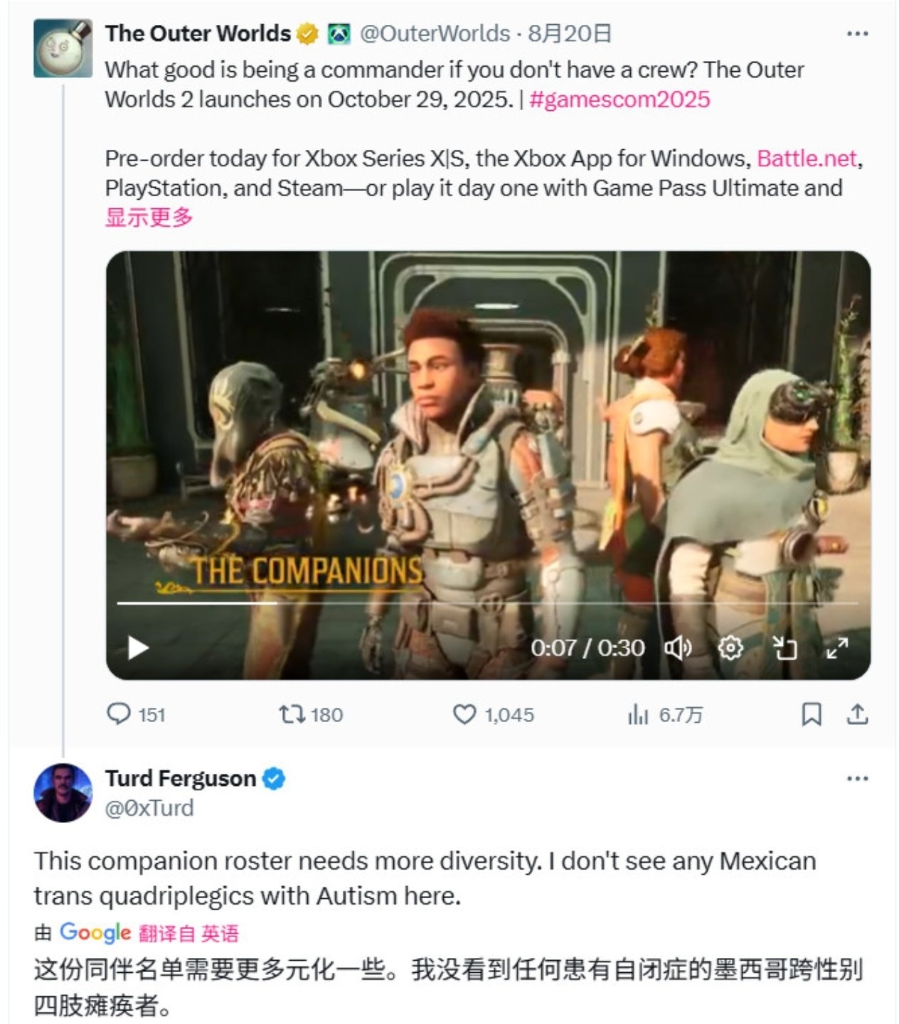视频中亮相的五位同伴角色引发轩然大波,玩家批评其设计过度追求多样性(DEI理念),导致视觉风格混乱且缺乏美感,用户将同伴造型与暴死的《星鸣特工》对比,指出两者均呈现“对蘑菇的痴迷、混乱配色及无视设计规范”,并讽刺“这类设计源于加州开发者的进步主义回音室”。部分玩家认为设计“缺乏吸引力”,削弱角色共鸣;另一派则支持多元化尝试,但呼吁平衡美感与包容性。