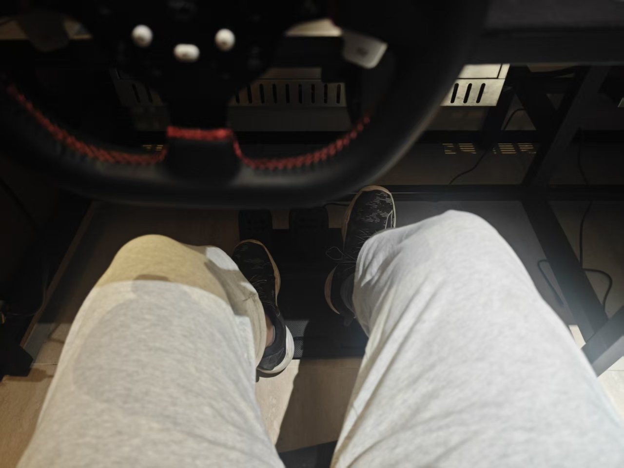 聊一聊小航母个人使用体验,这个脚踏板反馈力量很足,相比小航母自己的小奥迪家用车更硬很多。但是由于三个踏板间隙不是很大,如果穿着比较大的篮球鞋玩,可能有点挤脚。