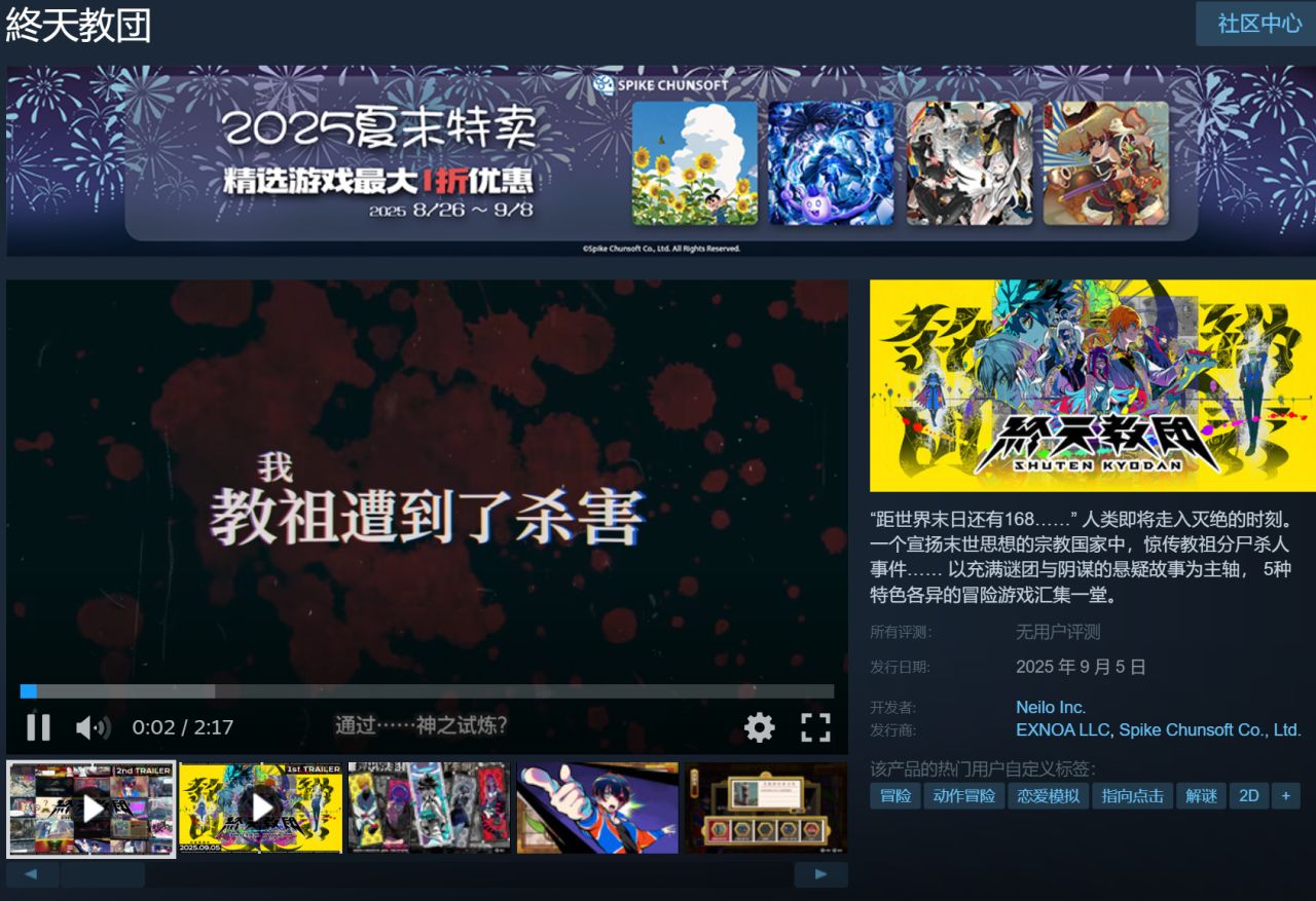 “距世界末日還有168……” 人類即將走入滅絕的時刻。 一個宣揚末世思想的宗教國家中,驚傳教祖分屍殺人事件…… 以充滿謎團與陰謀的懸疑故事爲主軸, 5種特色各異的冒險遊戲彙集一堂。