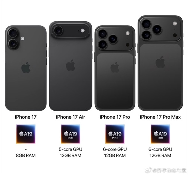 具体来看,iPhone 17售价799美元起(国行预估5999元起),iPhone 17 Air售价949美元起(国行预估6999元起),iPhone 17 Pro售价1049美元(国行预估8999元)、iPhone 17 Pro Max售价1249美元(国行预估10999元)。