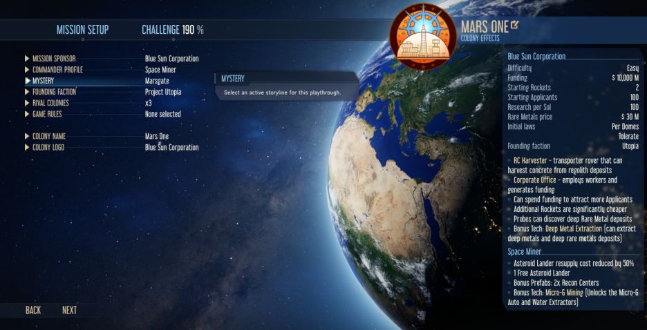 例如,藍太陽公司會更關注火星殖民的商業層面,比如出口稀有金屬、在火星建立企業架構,作爲回報,它能爲玩家提供探測火星地殼深處礦藏的技術,以及其他一些商業機遇。與之相對,火星改造計劃的唯一目標則是讓這顆紅色星球煥發生機、披上綠裝,並且它也會爲實現這一目標提供更便捷的方法。