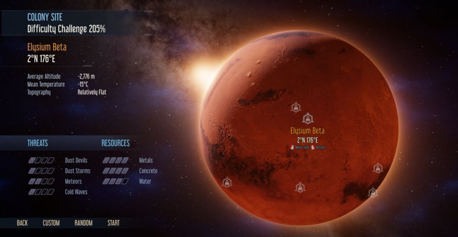 選擇合適的着陸點對殖民地的生存至關重要,你也可以通過選擇特定着陸點來提高遊戲難度,挑戰更高水平。