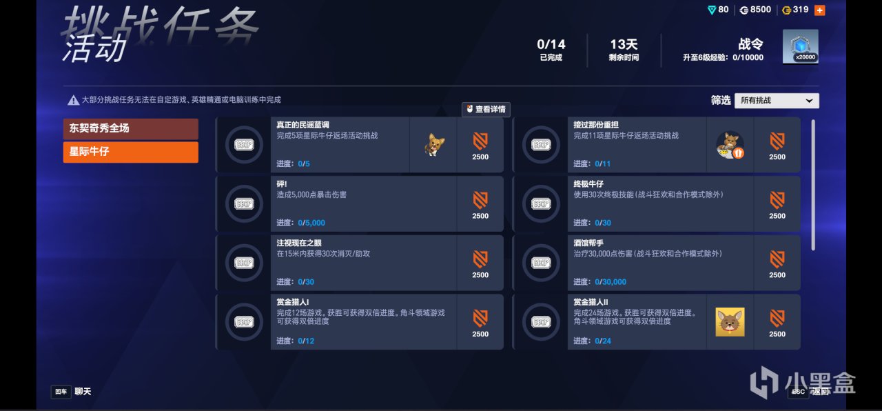 聯動活動,持續2周。14個2500戰令經驗活動,送倉鼠皮膚,應該是聯名的角色。賽季只有7周,不過開始的經驗活動送的還挺多的。