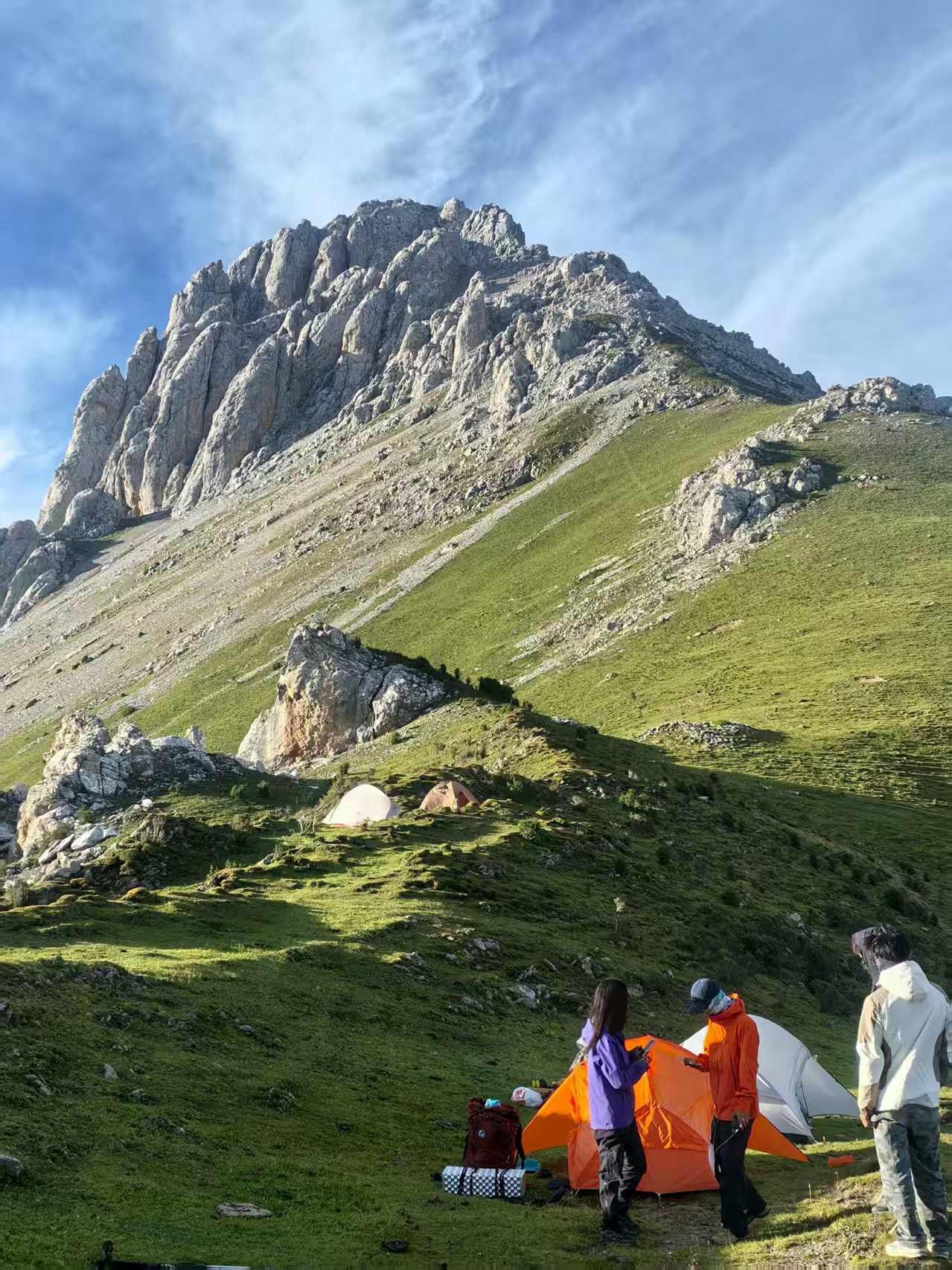 这次在川西呆半个月,和朋友去山里开了一条新的高海拔徒步路线开线意味着未知的探索,靠自己对地形的理解判断摸索出一条新的路非常感谢队里的大哥,这次开线一共五个人,安全出山了,感谢大山的接纳轨迹已经投两步路啦第一天走完我还说这个线有一点难度但不大,第二天我真尖叫了觉得这线有难度第二天需要倒攀以及下坡大量30-40度倾斜碎石坡