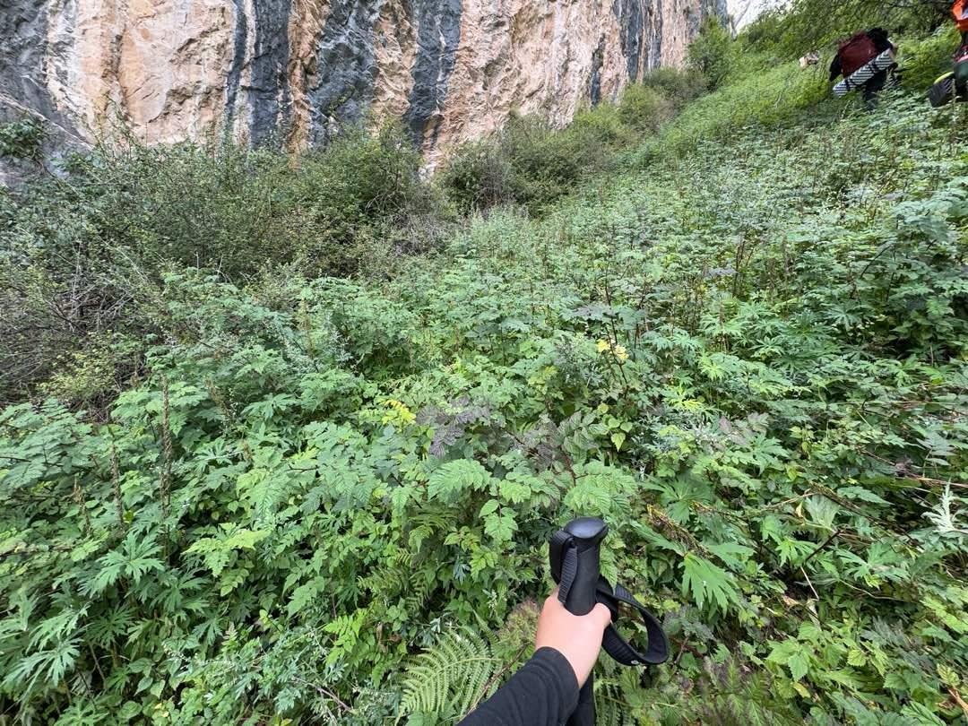 第一天5+KM爬升差不多一千好多30-40度的坡特别累一开始的路段相对来说比较平缓,走到大碎石坡,就开始有难度了