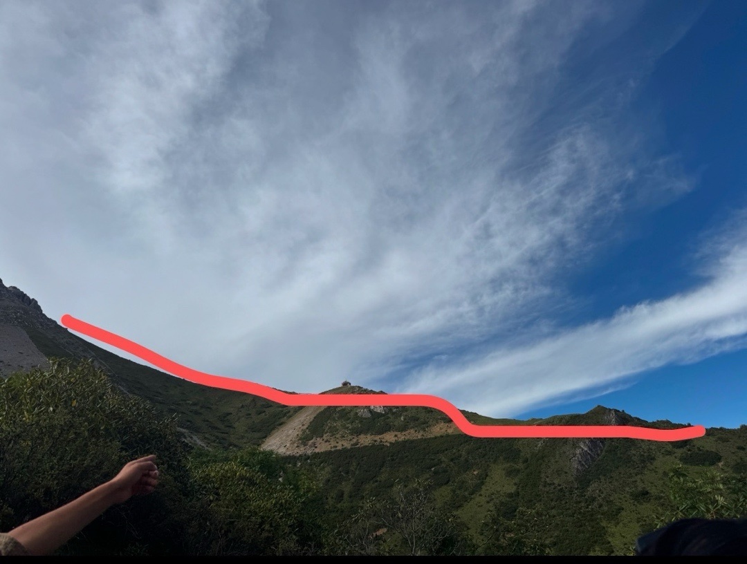 我们走的新线,大概快到扎营点的时候可以看到这座山的另一条徒步线路,标红的地方是原有的线,我们没去,在开辟新线