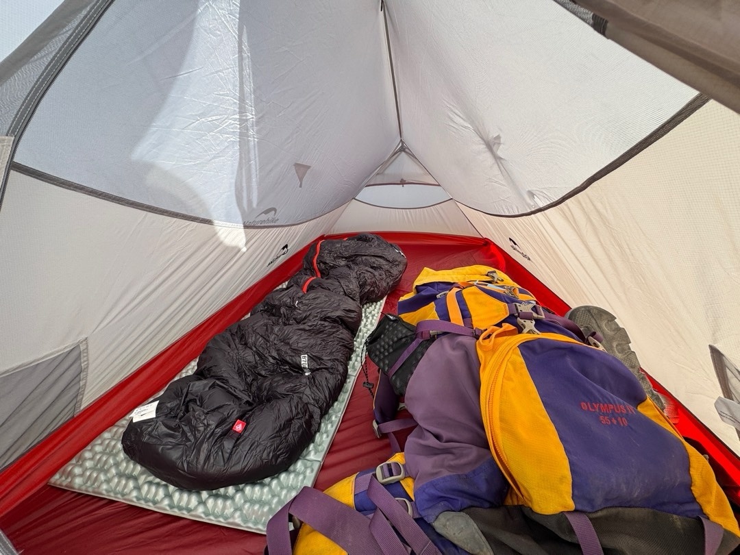 给盒友看看帐篷内部长什么样嘿嘿,双人帐,一边睡觉一边放东西很方便!晚上风特别大