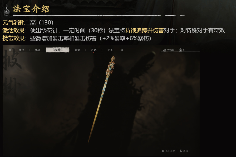 法宝用绣花针加伤害和暴击