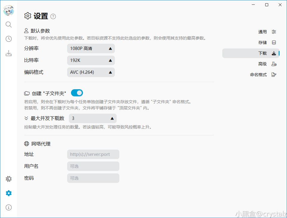 设置中可以调整文件保存位置、优先下载的分辨率、编码格式、命名规则等,大家可以在使用前先设置好,再开始下载。