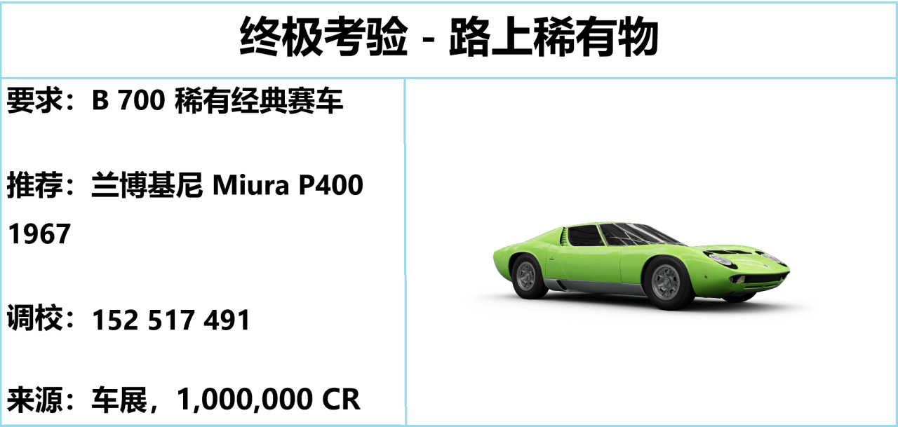蛇頭是 1 衝刺+ 2 環道,夜間行車注意安全。稀有經典賽車都很貴,Miura P400 是相對便宜且好用的,衝刺效果不錯但轉向有點硬。