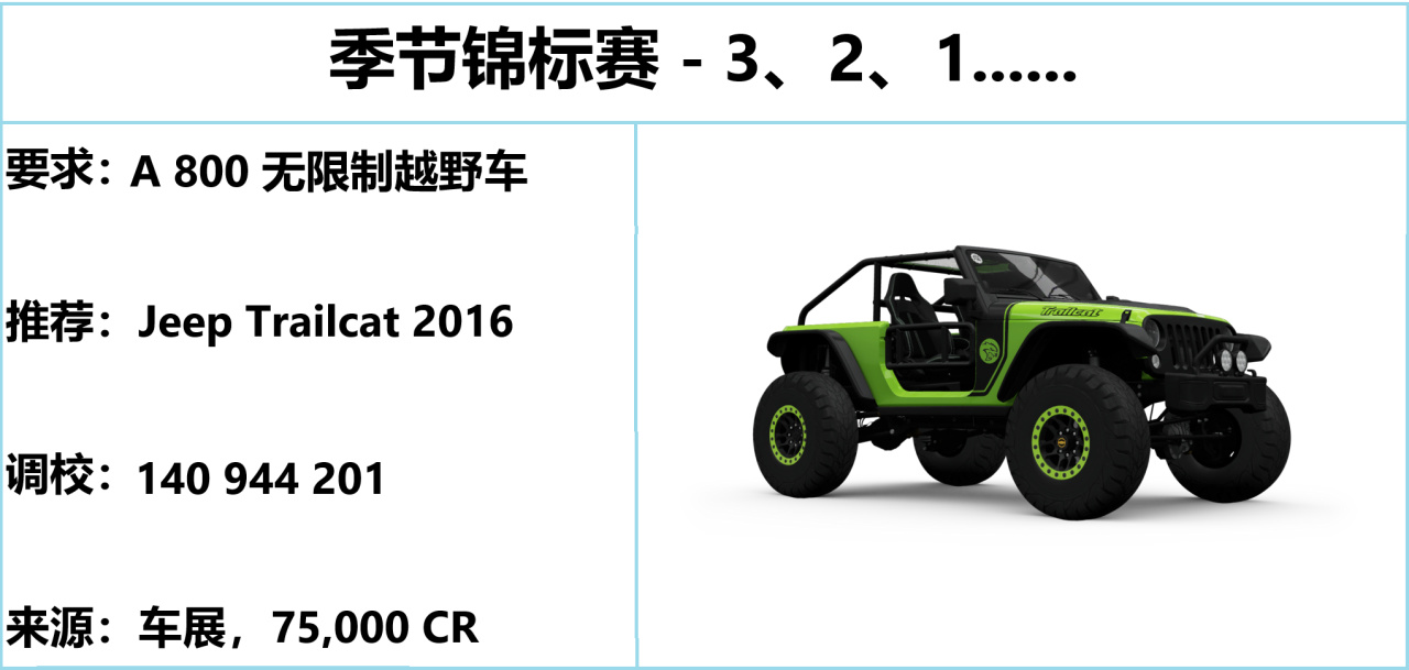 注:FH5 的終極考驗、季節遊樂場均爲三局兩勝制,後者無論輸贏均能拿到獎勵,切勿中途退賽。
