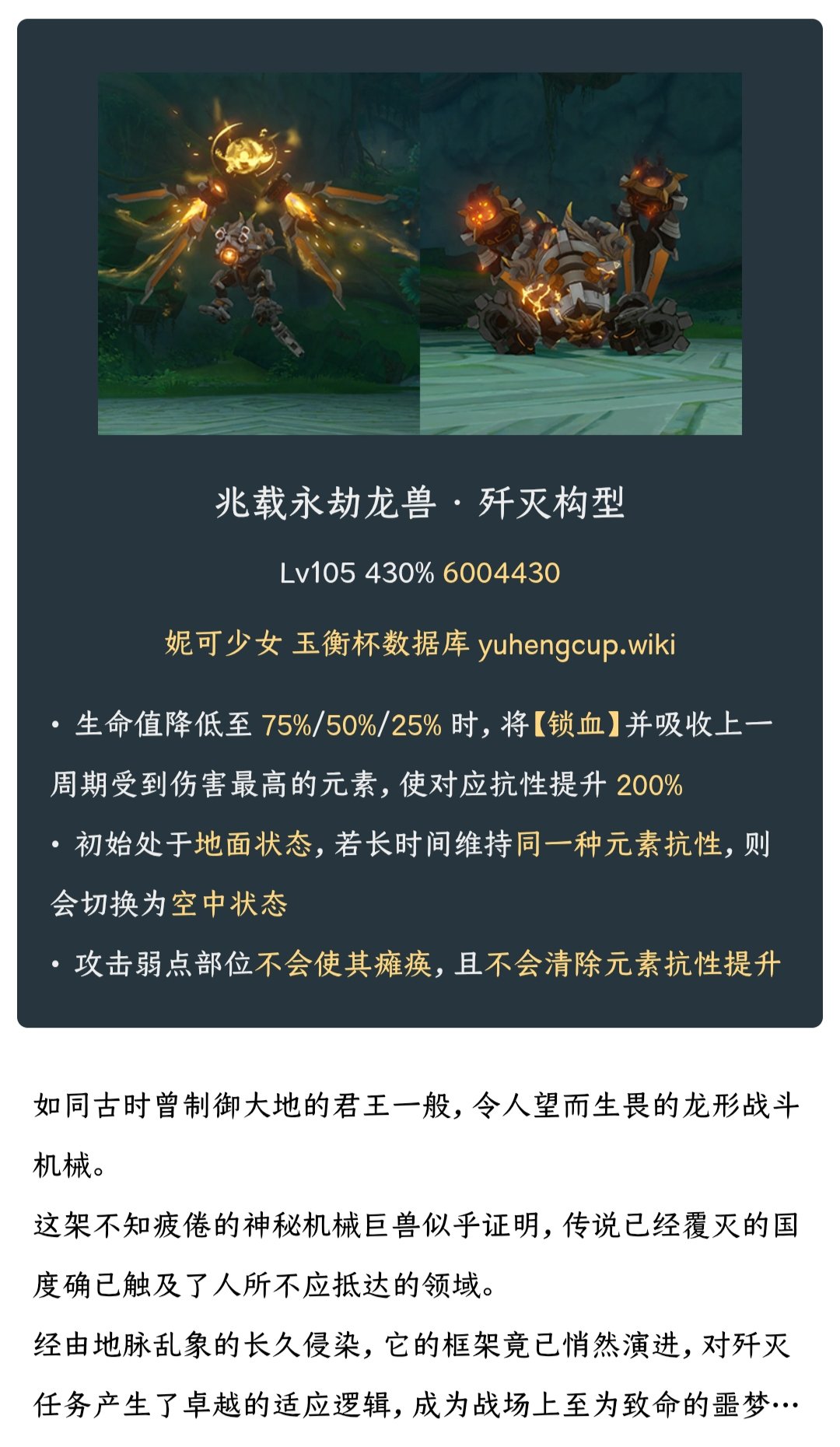 每掉 25% 血记录一次“最高单次元素伤害”(物理不算),之后巨幅提升该元素抗性;50 秒内必须打满 4 次记录,否则飞天=时间到直接失败。