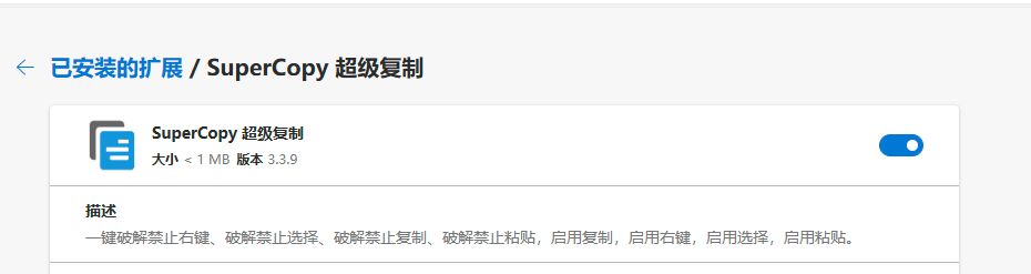 可以破解部分網站限制鼠標右鍵進行復制的限制,從而進行復制文本等操作,經測試還是有網站無法複製,不過遇見想複製的內容可以先嚐試一下這個拓展。