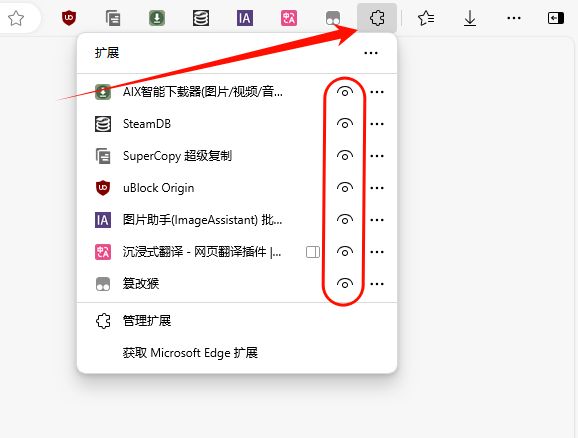 獲取好插件後記得也是在這個頁面中開啓小眼睛,這樣纔會在網頁上方展示圖標快捷鍵